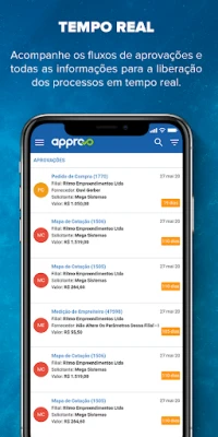Liberte sua equipe das amarras do escritório. Com o **Approvo**, a mobilidade é uma realidade. Tenha a liberdade de analisar e autorizar processos críticos a qualquer hora, em qualquer lugar, seja no conforto do seu computador, na praticidade de um tablet ou na conveniência de um smartphone. Além disso, mantenha-se sempre atualizado com o acompanhamento em tempo real dos fluxos de aprovação. Cada detalhe, cada status e todas as informações necessárias para a liberação de um processo estão acessíveis instantaneamente, garantindo que nada passe despercebido e que sua operação continue fluida e sem interrupções. Descubra o poder de uma gestão verdadeiramente conectada e responsiva com o **Approvo** da **Mega**.