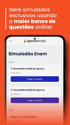 No Aprova Total, a excelência e a inovação se encontram para oferecer uma experiência de aprendizado completa. Acesso a provas anteriores do ENEM com gabarito, cursos focados e revisões com macetes estratégicos são apenas uma parte do que você encontra em nosso aplicativo de estudos. Mais do que preparar, o Aprova Total empodera você a se destacar, combinando expertise, tecnologia e uma abordagem atualizada para que cada estudante, do iniciante ao avançado, possa realizar seus sonhos acadêmicos.