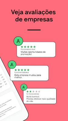 Descubra vagas, salários e avaliações de empresas com o Glassdoor. Obtenha insights reais sobre milhares de companhias, compartilhados por funcionários. Simplifique sua busca e encontre seu próximo emprego com total transparência e eficiência, explorando o mercado de trabalho como nunca antes.