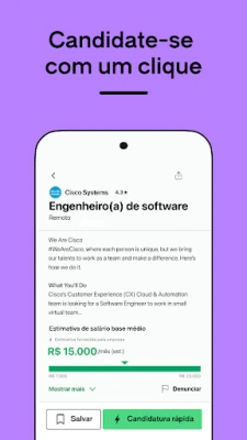 Descobrir vagas se torna uma experiência fluida e intuitiva com o Glassdoor. Explore listagens de emprego detalhadas, salve as que mais ressoam com seus objetivos e compartilhe as favoritas com facilidade. Para garantir que nenhuma oportunidade valiosa escape, configure alertas personalizados e receba notificações sobre novas posições que se alinham perfeitamente ao seu perfil. Além disso, o Glassdoor oferece uma transparência salarial sem precedentes: compare remunerações por empresa, cargo e localidade, compreenda a composição de pacotes de benefícios, bônus e participação nos lucros, e tome decisões financeiras mais informadas.