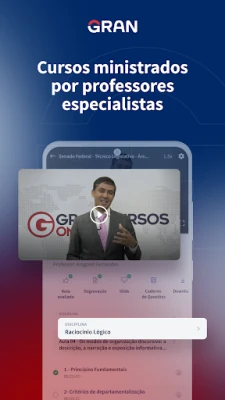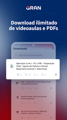 Imagine ter a liberdade de aprender a qualquer hora, em qualquer lugar. O Gran Cursos Online torna isso realidade, permitindo o acesso offline a videoaulas imersivas em Full HD e com legendas – pensadas para amplificar a absorção do conteúdo e oferecer suporte a usuários com deficiência auditiva oralizada. Complemente seus estudos com audioaulas e PDFs autossuficientes, todos disponíveis para consulta sem conexão. Nossas funcionalidades inteligentes, como o cronograma de estudos automático e a retomada exata do ponto onde parou, garantem uma progressão fluida. Desfrute também da transmissão de videoaulas para sua TV via função CAST e da sincronização automática de seu progresso, seja online ou offline, assegurando que seu desempenho e planejamento permaneçam sempre atualizados.