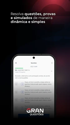 Na Gran Cursos Online, somos movidos pela convicção de que a tecnologia é a chave para democratizar o conhecimento e catalisar transformações significativas na vida das pessoas. Com o App de Questões Gran Cursos Online, materializamos essa crença, oferecendo um arsenal completo para que você conquiste a tão almejada aprovação em qualquer certame ou na OAB. Prepare-se com um vasto repositório de provas passadas, simulados desafiadores e milhares de questões criteriosamente selecionadas, muitas delas acompanhadas de comentários detalhados tanto por nosso corpo docente especializado quanto pela comunidade de alunos, enriquecendo a perspectiva de aprendizado. Sua jornada de estudo agora tem um parceiro estratégico e inovador.