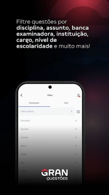 Descubra o App de Questões do Gran Cursos Online. Acesse ferramentas inovadoras e conteúdo educacional de excelência, cuidadosamente desenvolvido para democratizar o ensino. Uma plataforma completa para aprimorar seus estudos e alcançar seus objetivos acadêmicos com suporte de alta qualidade.