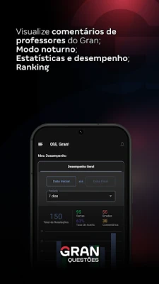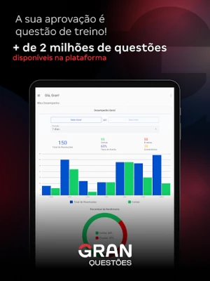 Monitorar sua evolução é vital, e o App de Questões Gran Cursos Online oferece um painel de controle intuitivo (dashboard) para gerenciar seu cronograma e acompanhar o desempenho em tempo real. A seção de estatísticas fornece uma visão aprofundada, detalhando seu progresso em questões e simulados, permitindo identificar pontos fortes e áreas que necessitam de mais atenção. Para uma experiência de estudo contínua e confortável, mesmo em ambientes com pouca luz, o modo noturno foi cuidadosamente desenvolvido para proteger sua visão e proporcionar uma leitura agradável. Tudo isso converge para um ambiente de aprendizado focado na sua máxima performance, guiando você a cada passo em direção à sua vaga.