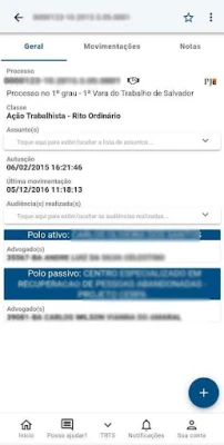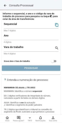 Transforme a maneira como você interage com a justiça trabalhista. Esta aplicação oferece um portal unificado para todos os Tribunais Regionais do Trabalho (TRTs) e o Tribunal Superior do Trabalho (TST), trazendo clareza e eficiência ao seu dia a dia jurídico. Acesse detalhadamente a movimentação de processos judiciais, acompanhando cada etapa com precisão. Mantenha-se à frente, com todas as informações essenciais organizadas e prontas para sua consulta.