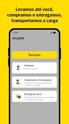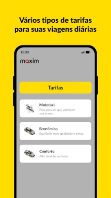 Experimente a conveniência e a eficiência com Maxim, sua plataforma multifuncional para transporte e entregas. Projetado para quem valoriza o tempo e busca soluções práticas, Maxim oferece uma gama de serviços adaptados a cada necessidade. Desloque-se rapidamente com a "Mototaxi", ideal para agilizar seu dia. Para o cotidiano, escolha as opções "Econômico" ou "Conforto", que garantem viagens agradáveis e com ótimo custo-benefício. Se a viagem for em grupo ou exigir espaço extra para bagagem, a categoria "Minivan" é a escolha perfeita, combinando comodidade e capacidade.