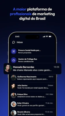 Não trilhe essa jornada sozinho. Conecte-se à nossa vibrante comunidade, um espaço colaborativo onde empreendedores e profissionais com aspirações semelhantes compartilham experiências, desafios e sucessos. Além disso, a plataforma abre portas para o mercado de trabalho digital: anuncie suas competências, exponha seu portfólio e seja encontrado por clientes qualificados que buscam exatamente as soluções que você oferece, facilitando negociações e parcerias com quem fala a sua língua.