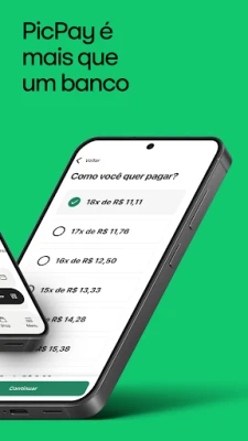 PicPay vai muito além de uma simples conta e pagamentos. Amplie seus horizontes financeiros com nossa plataforma de investimentos, oferecendo opções seguras e acessíveis para diversificar seu patrimônio. Utilize a função de parcelamento de boletos para organizar suas contas em até 36 vezes no cartão de crédito e aproveite o cashback, que devolve parte do seu dinheiro em diversas compras, diretamente na sua conta. Para a próxima geração, a Conta Para Menores promove a educação financeira desde cedo, com segurança e autonomia. E para sua total tranquilidade, o Modo Seguro adiciona uma camada extra de proteção a todas as suas transações e recursos. Descubra a liberdade de ter uma vida financeira descomplicada e recompensadora com PicPay.