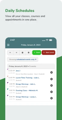 A organização da sua agenda é simplificada de maneira sem precedentes. Com o Pike13 staff app, você pode matricular clientes em diversas aulas, cursos e agendamentos, tudo isso com a conveniência de gerenciar a programação de qualquer dispositivo. Ele transforma a gestão de clientes, permitindo a criação de perfis detalhados e o envio de notificações e lembretes personalizados, fortalecendo os laços com sua base. Para sua equipe, a administração se torna fluida, possibilitando organizar horários de trabalho, controlar salários, gorjetas e comissões com total precisão.