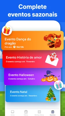 A jornada criativa em Pixel Art vai além da tela digital. Explore o inovador Jardim de Flores, onde poderá pintar elementos exclusivos para cultivar o seu próprio oásis virtual e desbloquear recompensas cativantes. Participe em Eventos Sazonais temáticos que celebram feriados e festivais, como o Natal ou o Halloween, adicionando peças únicas à sua coleção. Desvende a magia da nossa Câmara Pixel Art, transformando as suas próprias fotografias em deslumbrantes obras pixelizadas para colorir. E para uma dimensão extra de diversão, experimente dar vida a objetos 3D com a nossa funcionalidade de pintura tridimensional, partilhando os seus progressos em vídeos de lapso de tempo com um único toque.