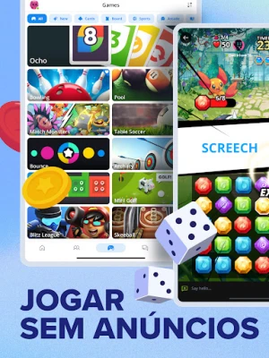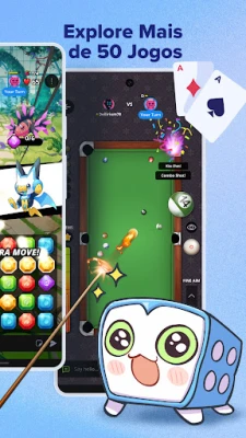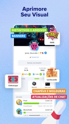 A diversidade de jogos em Plato abrange todos os gostos. Desafie amigos em clássicos atemporais como Damas 🏁 ou Dominó ◻️, mergulhe em partidas de cartas como Truco 🃏 ou Pôquer Hold'em ♣️, explore a sorte no Ludo 🟠 ou Bingo 🅱️, ou teste suas habilidades em Tiro com Arco 🏹 e Boliche 🎳. Além dos favoritos globais, explore os originais de Plato, como Match Monsters 💎 e Brawlbots, que oferecem novidade e excitação. Mas Plato é muito mais do que apenas jogos: é uma plataforma social robusta. Crie grupos de bate-papo personalizados, junte-se a salas temáticas ou converse por voz, transformando cada partida numa oportunidade de conexão e camaradagem. Personalize o seu perfil e os temas das conversas em grupo, criando um espaço que seja verdadeiramente seu.
