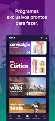 Com Wolt: Fisio e Fortalecimento, reabilite-se, previna lesões e alivie suas dores. Acesse mais de mil exercícios e programas completos, perfeitos para fisioterapeutas, atletas e todos que buscam fortalecer o corpo e manter uma vida saudável em movimento. Seu guia essencial para saúde musculoesquelética.